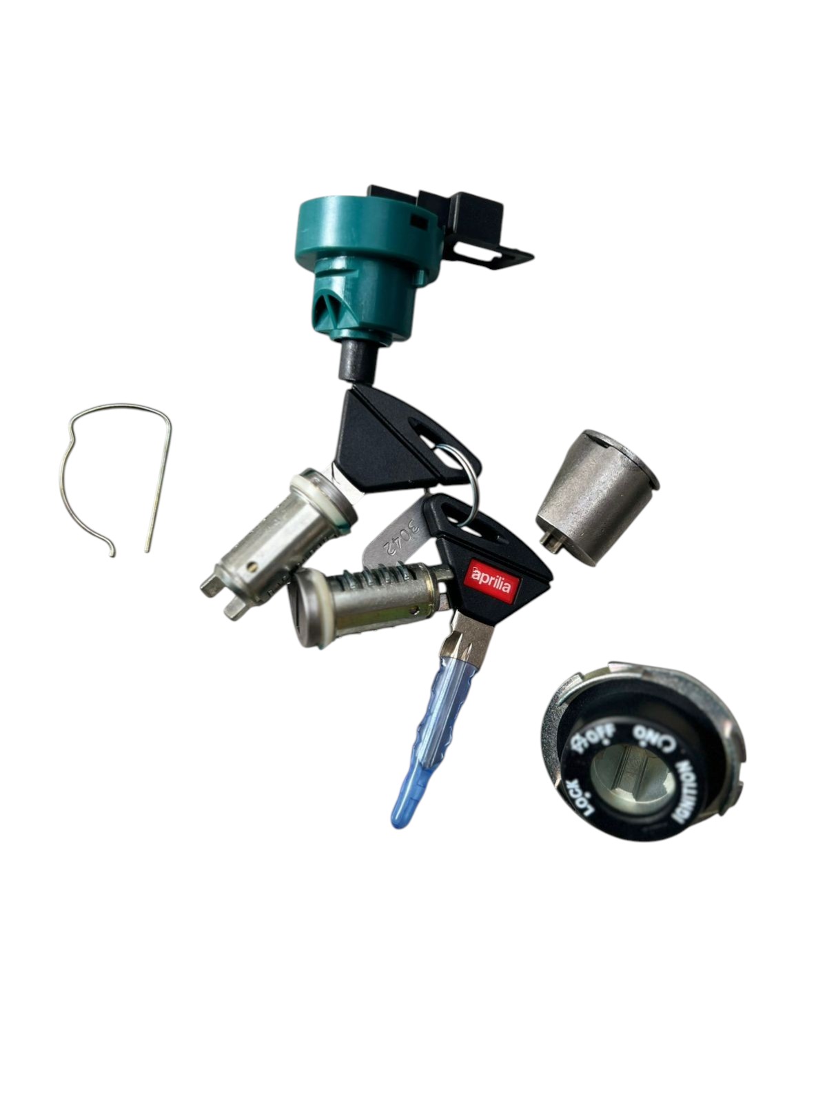 The Lock Set for Aprilia is a complete locking system designed to provide secure and reliable protection for your scooter. This set typically includes the ignition lock, seat lock, and fuel tank lock, ensuring smooth operation and consistent performance.